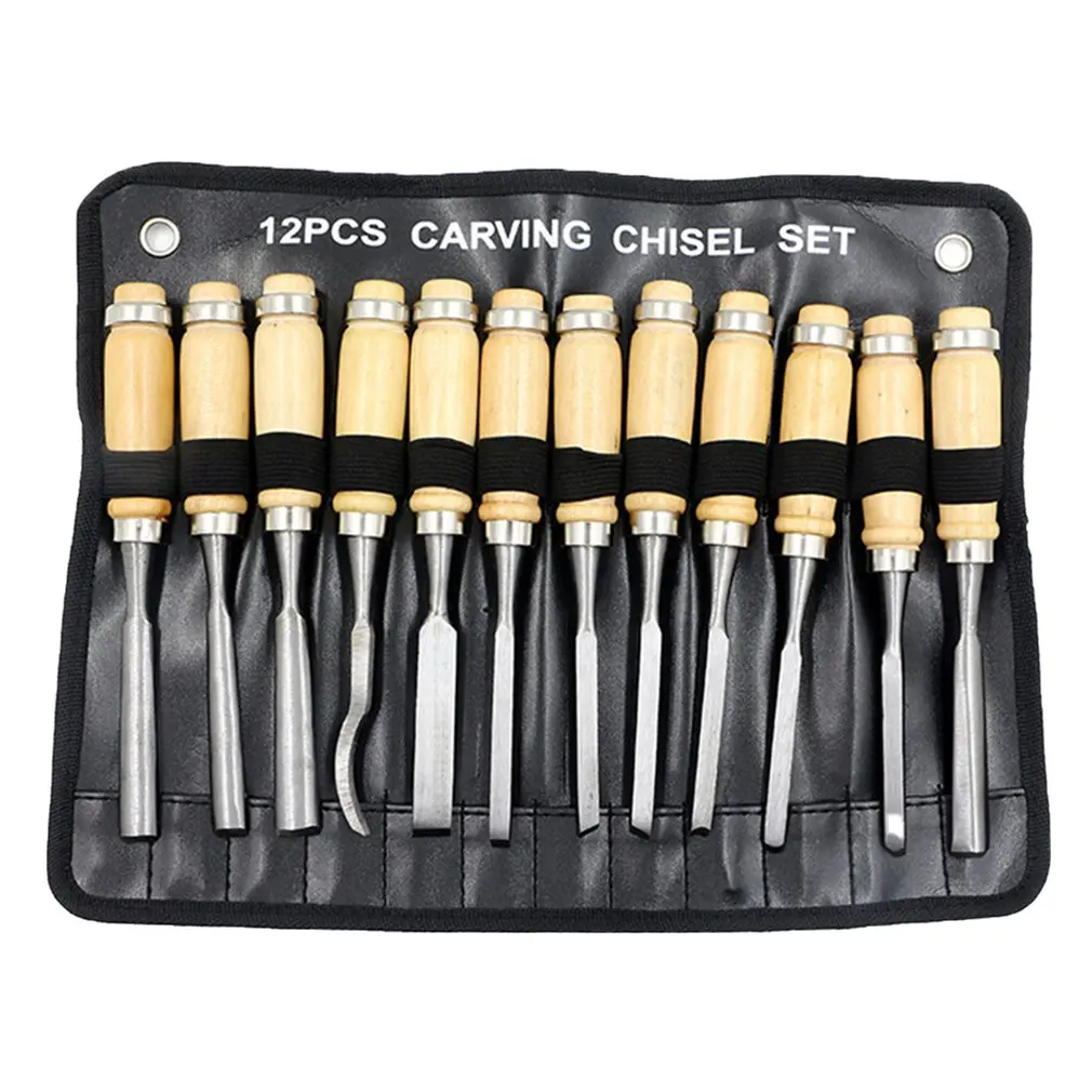 12 Pieces Wood Carving Hand Chisel Tool Set Woodworking Professional Gouges with Pouch original Price($) 11.52 salePrice($) 8.99