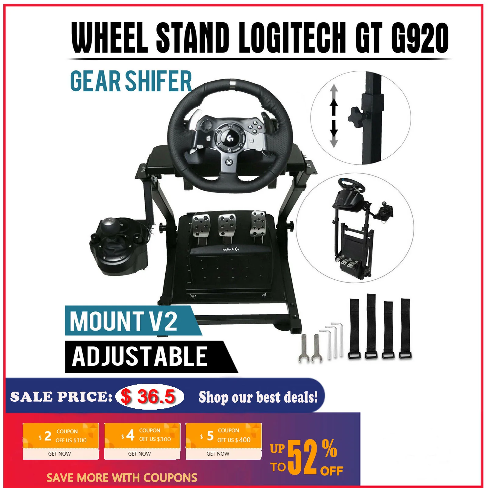 Driving Racing Simulator Cockpit Steering Wheel Stand For Logitech G920 G29 Universal Folding Steering Wheel PS4 Wheel Support original Price($) 73 salePrice($) 37.23