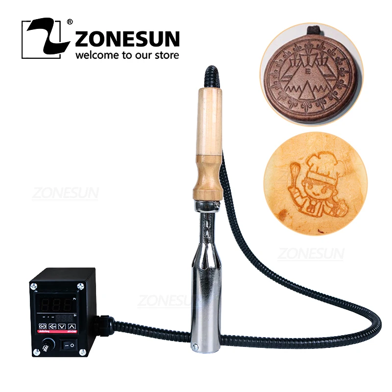 cheap!!!- ZONESUN Leather Craft Wood Cake Bread Paper Logo Stamp Branding Stamping Machine Handheld Bronzing Tool Hot Press Machine